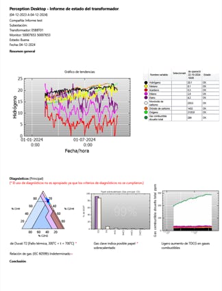 Junto con esto es compatible para trabajar con el software Perception de General Eléctric el cual entrega una herramienta muy poderosa para el seguimiento continuo de los transformadores, análisis y algoritmos de diagnóstico.